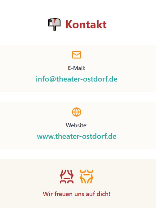 👥 MitmachenDu hast Lust, Theaterluft zu schnuppern? Dann bist du bei uns genau richtig!Egal ob du lieber im Rampenlicht stehst oder im Hintergrund wirkst – bei uns findest du deinen Platz: Unerstützt von: „Theater ist die Kunst, uns selbst zu betrachten.“ Instagram KontaktImpressumDatenschutzerklärung